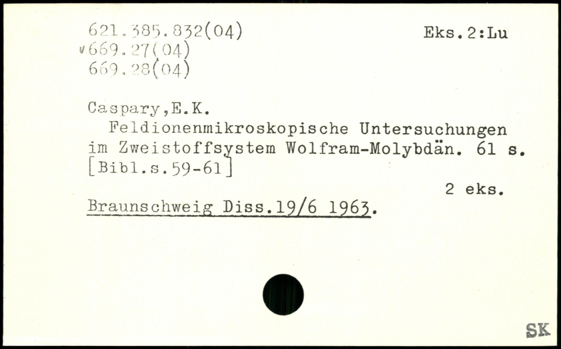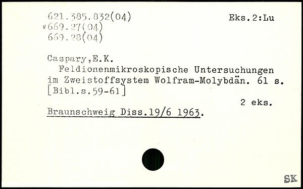 Feldionenmikroskopische Untersuchungen im Zweistoffsystem Wolfram-Molybdän. 6l s.