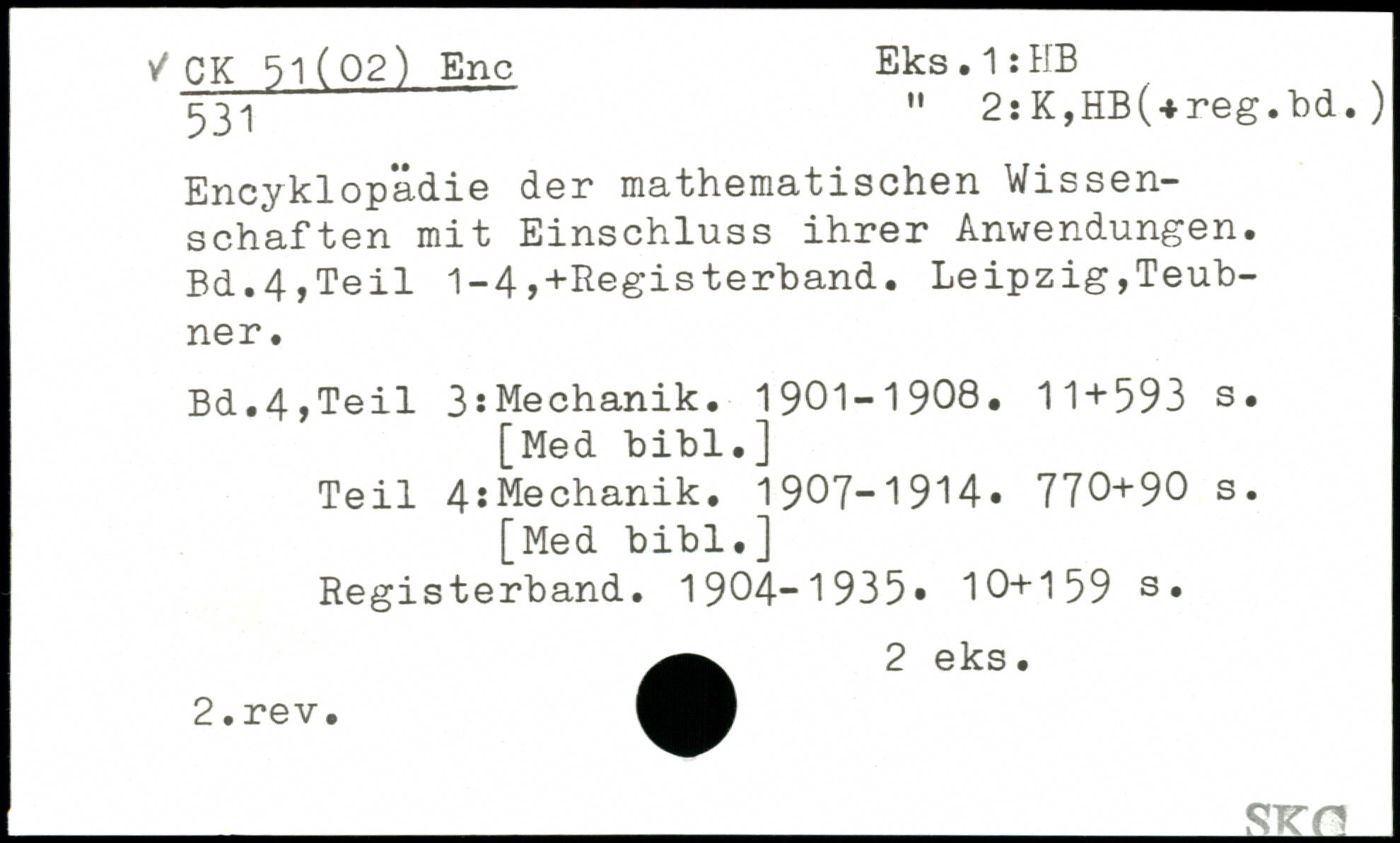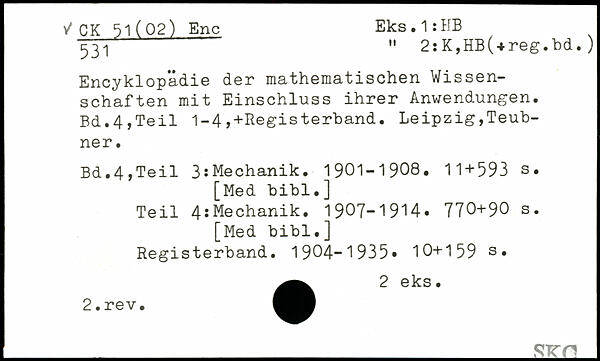 Encyklopädie der mathematischen Wissenschaften mit Einschluss ihrer Anwendungen.