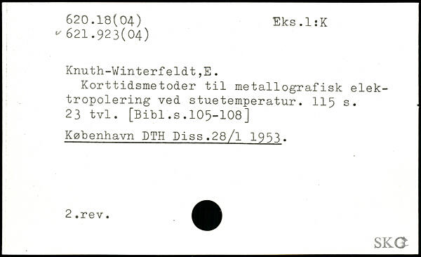 Korttidsmetoder til metallografisk elek-tropolering ved stuetemperatur.