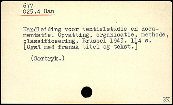 Handleiding voor textielstudie en docu-mentatie. Opvatting, organisatie, methode, classificeering. Brussel 1943.
