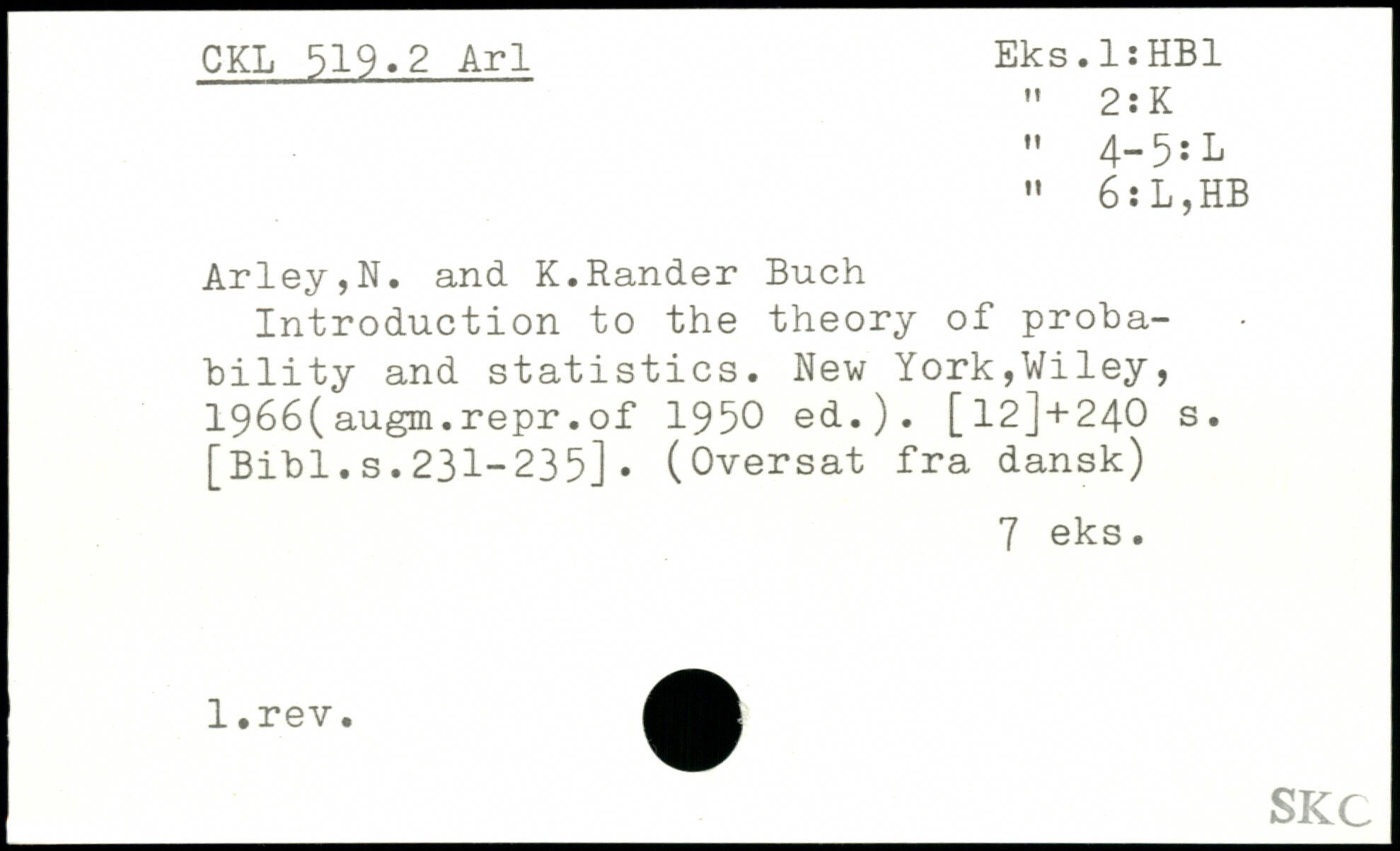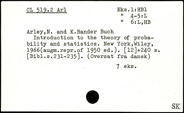 Arley,N. and K.Rander Buch Introduction to the theory of probability and statistics.