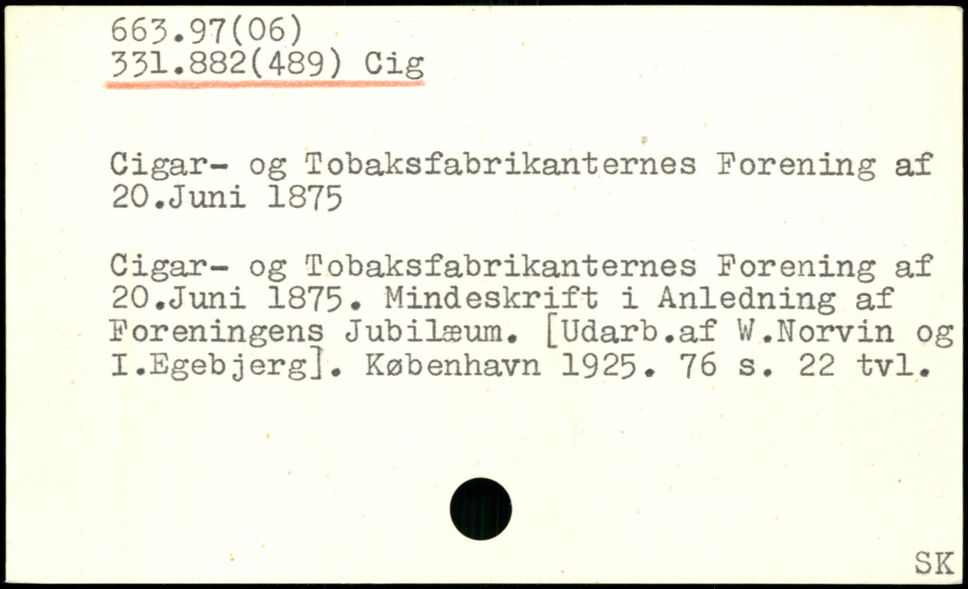Cigar- og Tobaksfabrikanternes Forening af 20.Juni 1875 Cigar- og Tobaksfabrikanternes Forening af 20.Juni 1875# Mindeskrift i Anledning af Foreningens Jubilæum. [Udarb.af W.Norvin og I.Egebjerg].