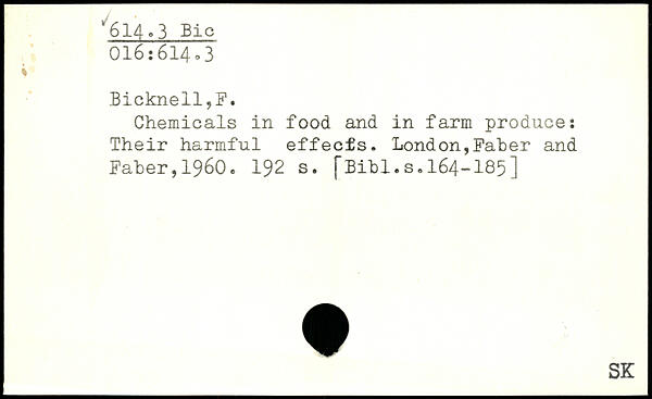 Chemicals in food and in farm produce: Their harmful effeefs.
