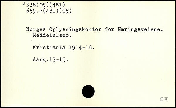 Norges Oplysningskontor for Næringsveiene. Meddelelser. Kristiania 1914-16. Åarg.13-15.