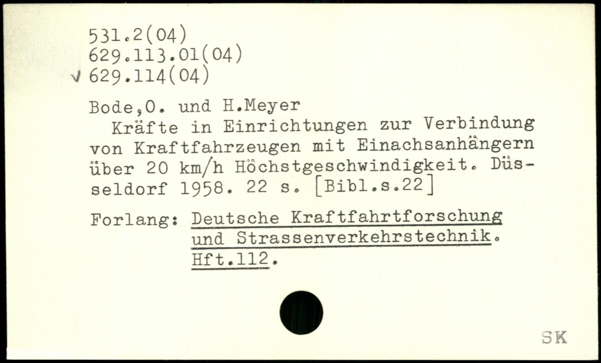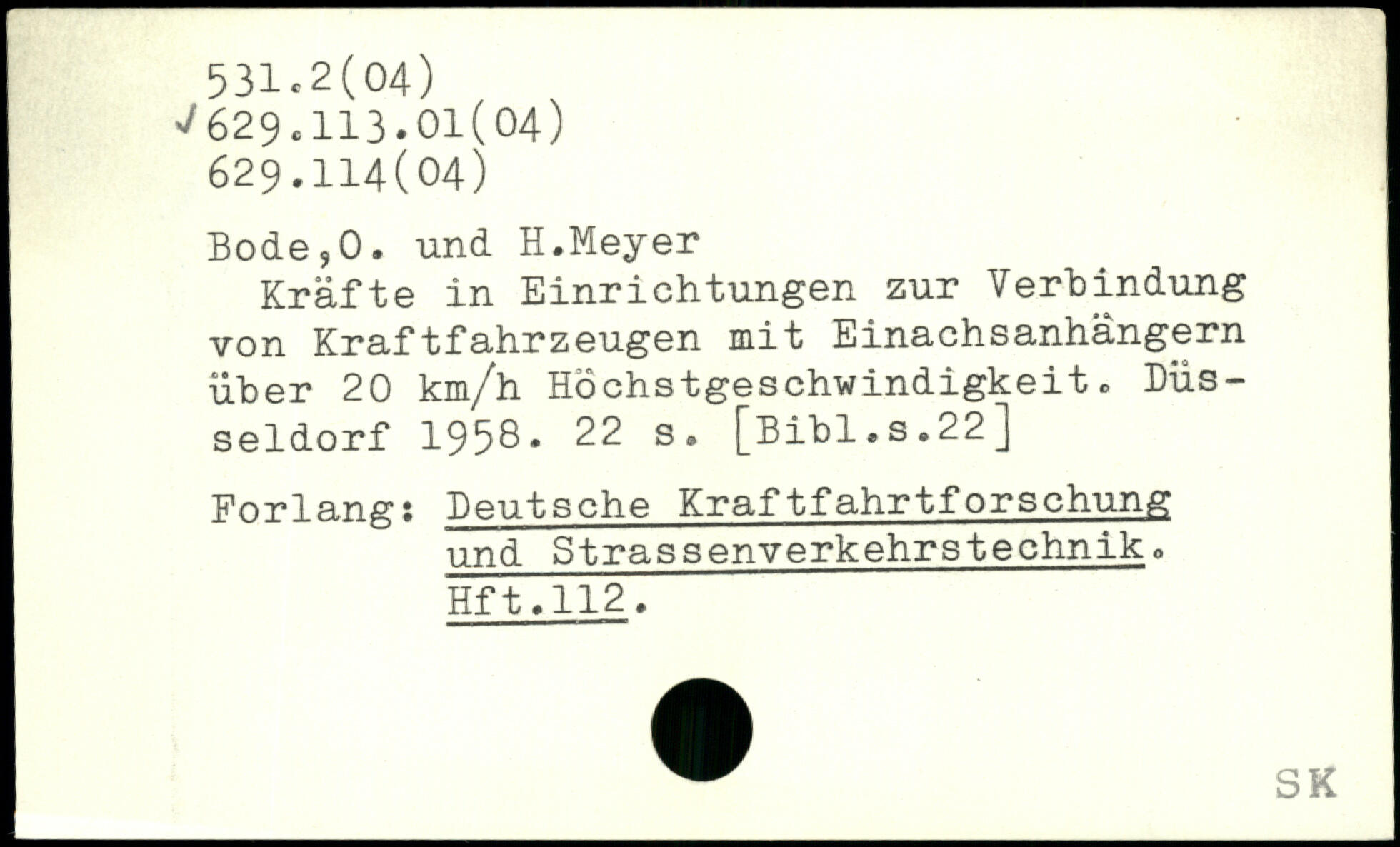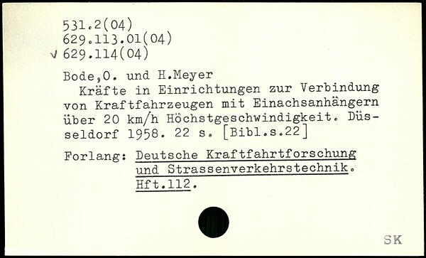 Kräfte in Einrichtungen zur Verbindung von Kraftfahrzeugen mit Einachsanhängern über 20 km/h Höchstgeschwindigkeit. Düsseldorf 1958