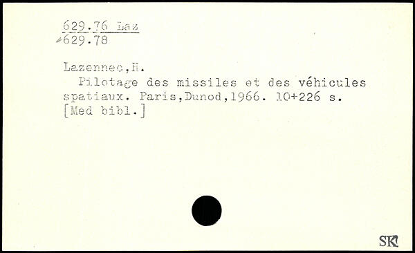Lazennec,fi. Pilotage des missiles et des véhicules spatiaux. Paris ,I>unod , 1966.
