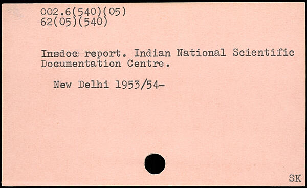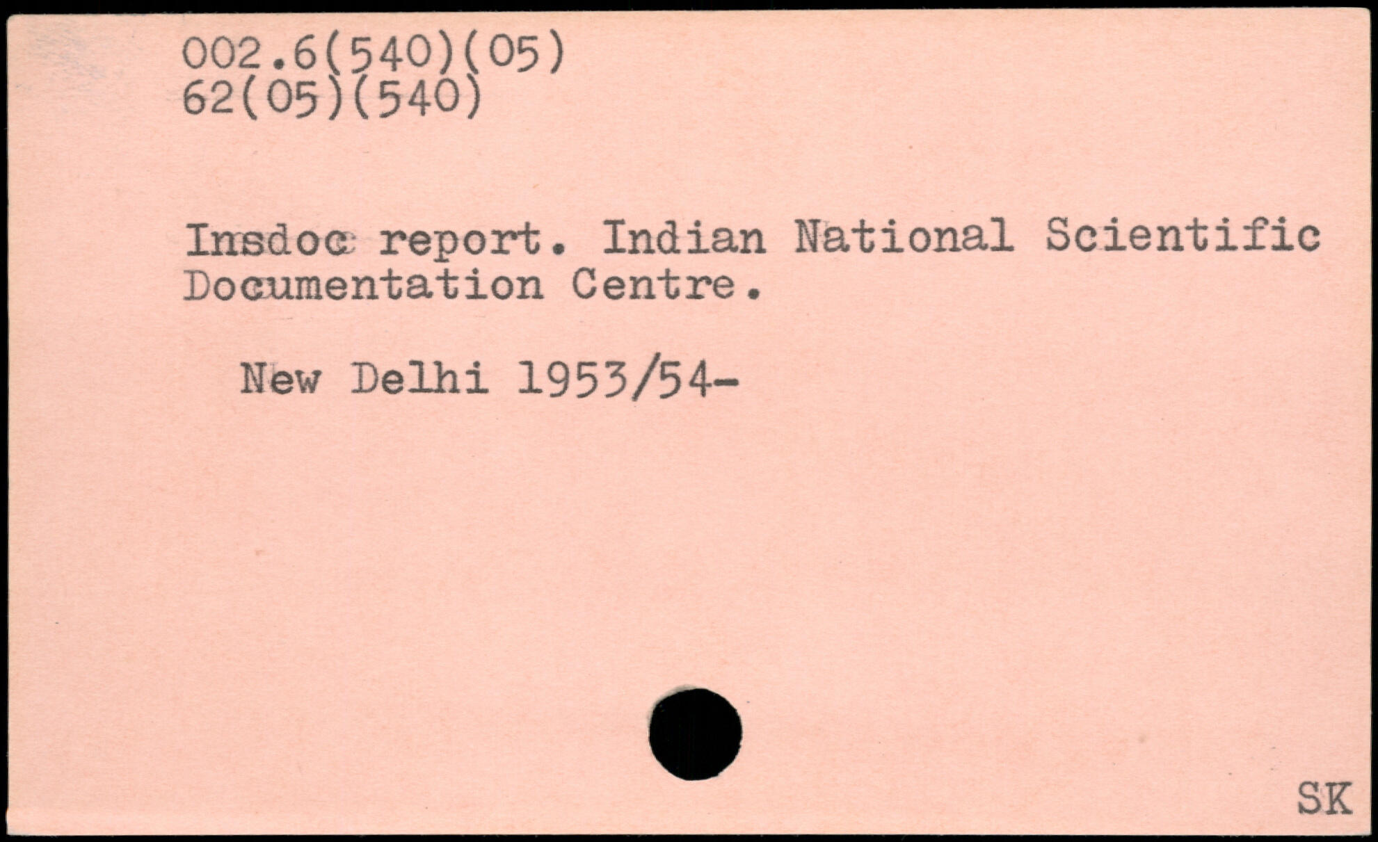 Insdoc report. Indian National Scientific Documentation Centre. New Delhi 1953/54-