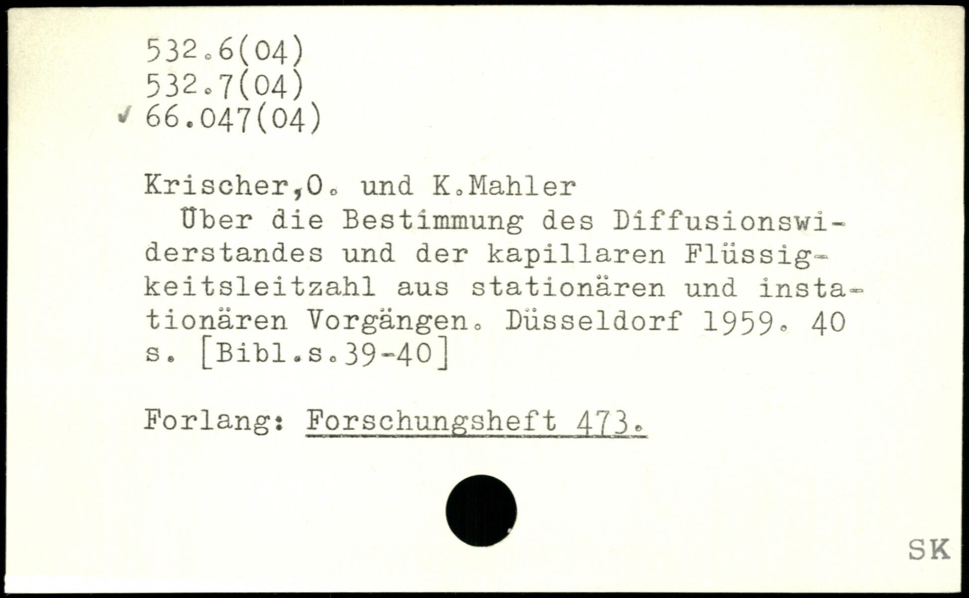 Uber die Bestimmung des Diffusionswiderstandes und der kapillaren Flüssig-keitsleitzahl aus stationären und instationären Vorgängeno Düsseldorf 1959