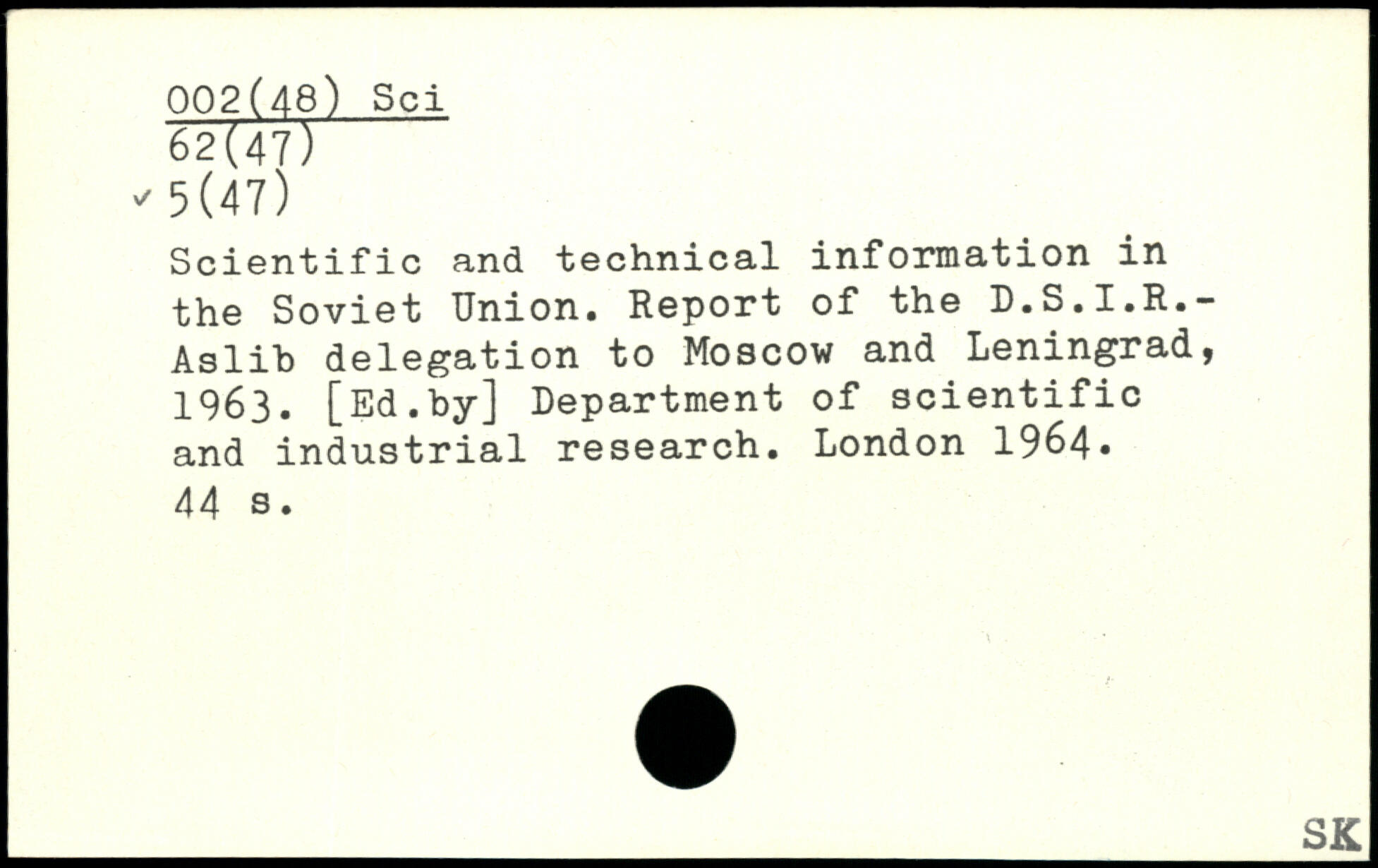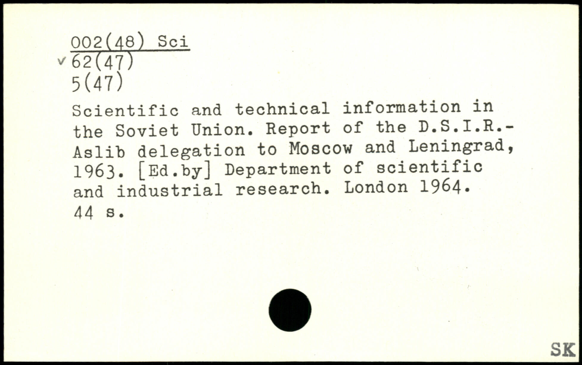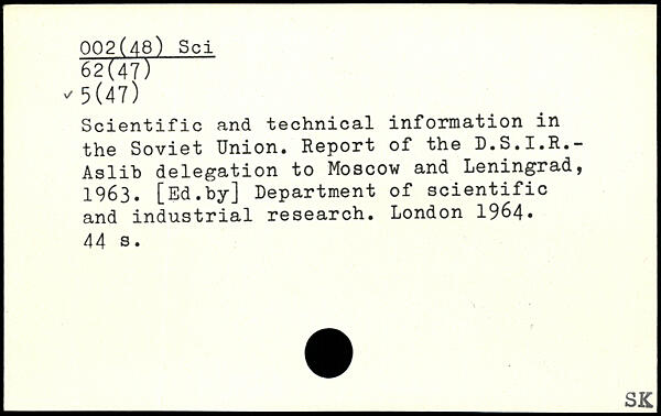 Scientific and technical information in the Soviet Union. Report of the D.S.I.R.-Aslib delegation to Moscow and Leningrad, 1963. [Ed.by] Department of scientific and industrial research.