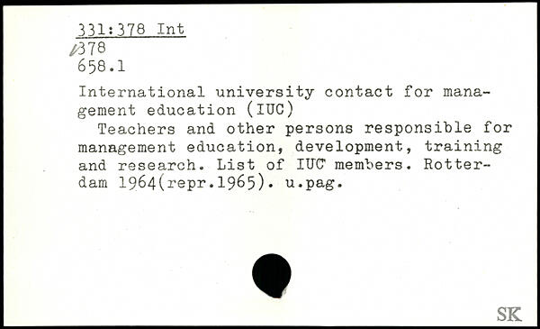 International university contact for management education (lUC) Teachers and other persons responsible for management education, development, training and research. List of ITJCT members. Rotterdam 1964(repr.1965). u.pag.