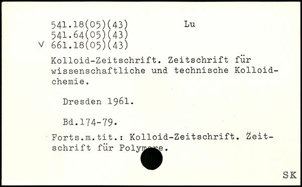 Kolloid-Zeitschrift. Zeitschrift für wissenschaftliche und technische Kolloid-chemie. Dresden 1961.