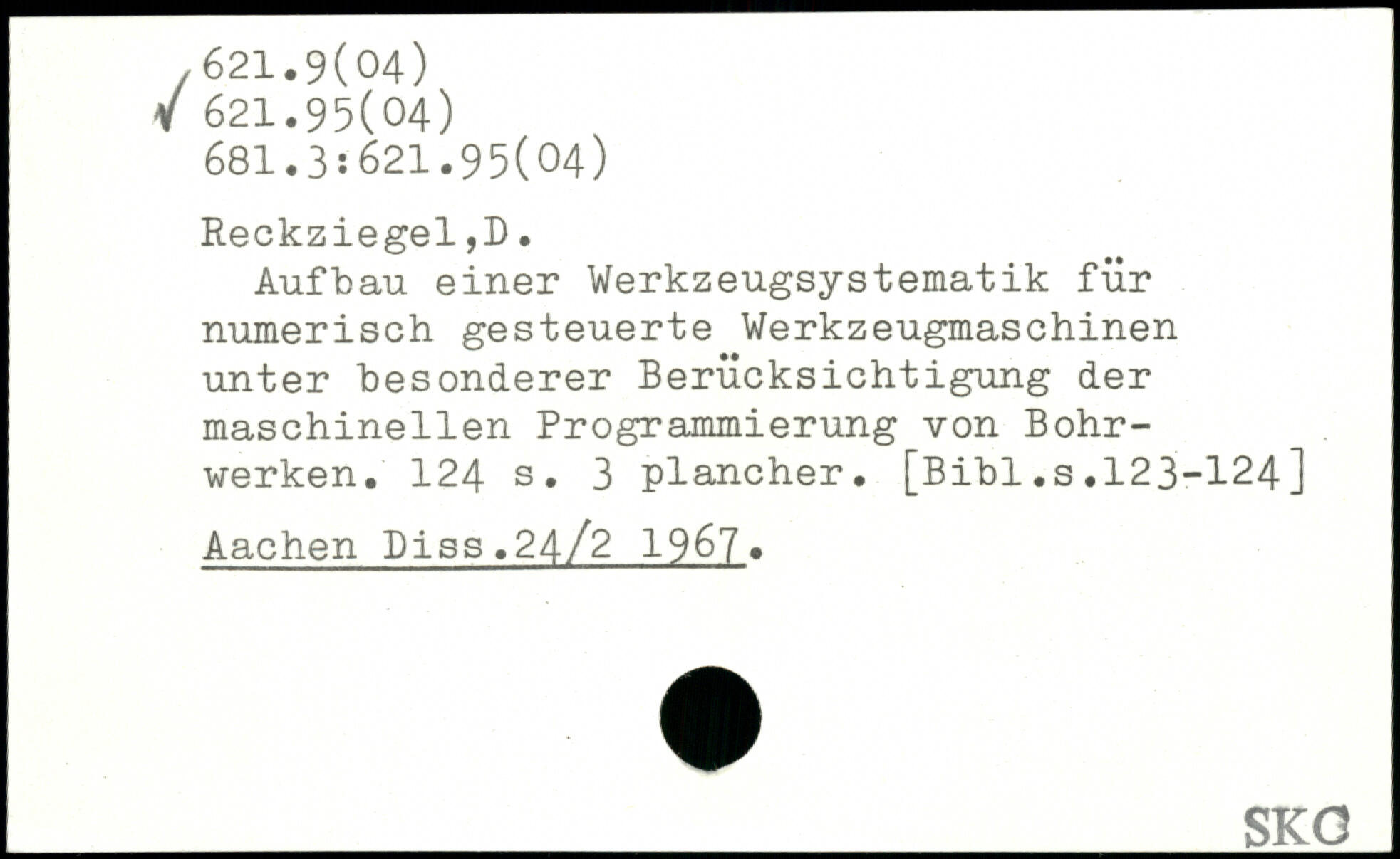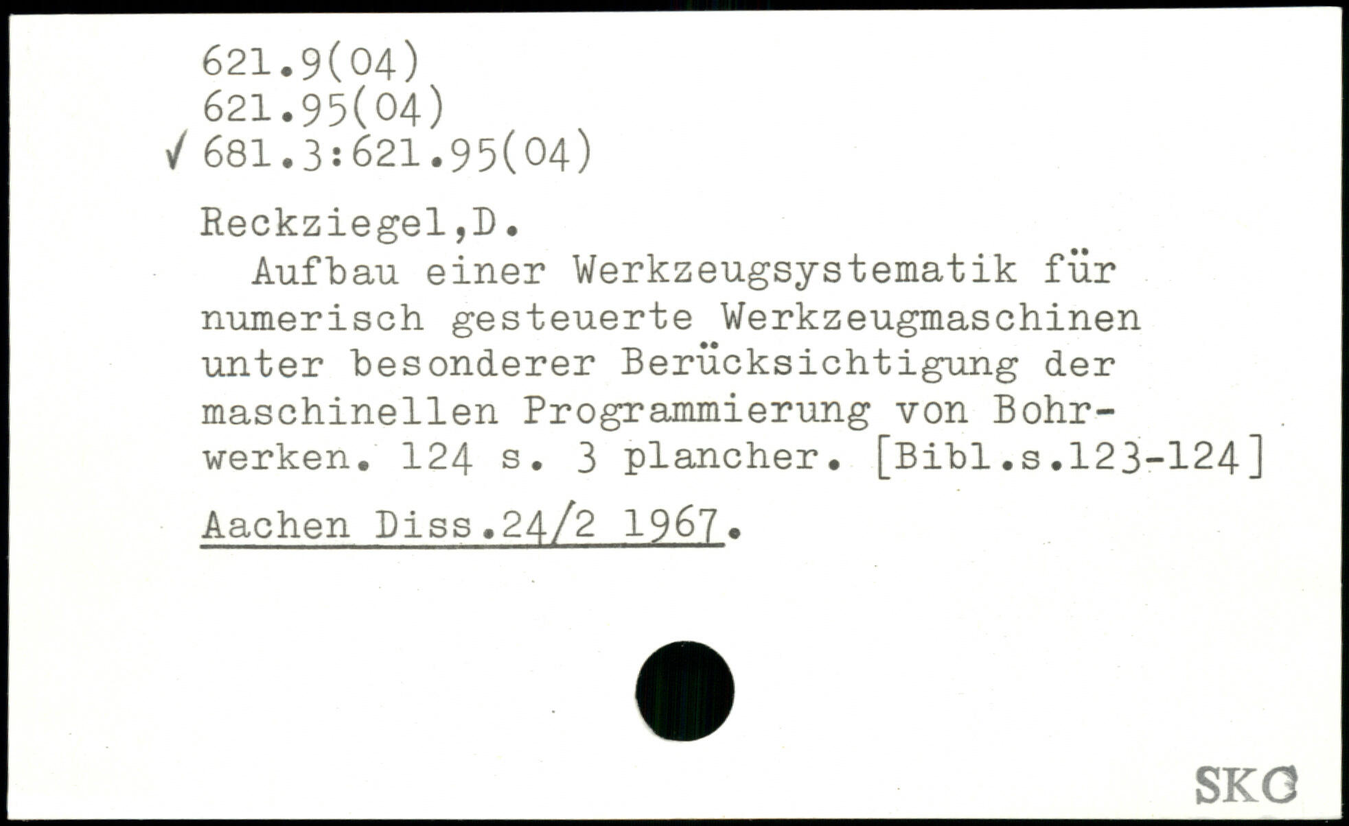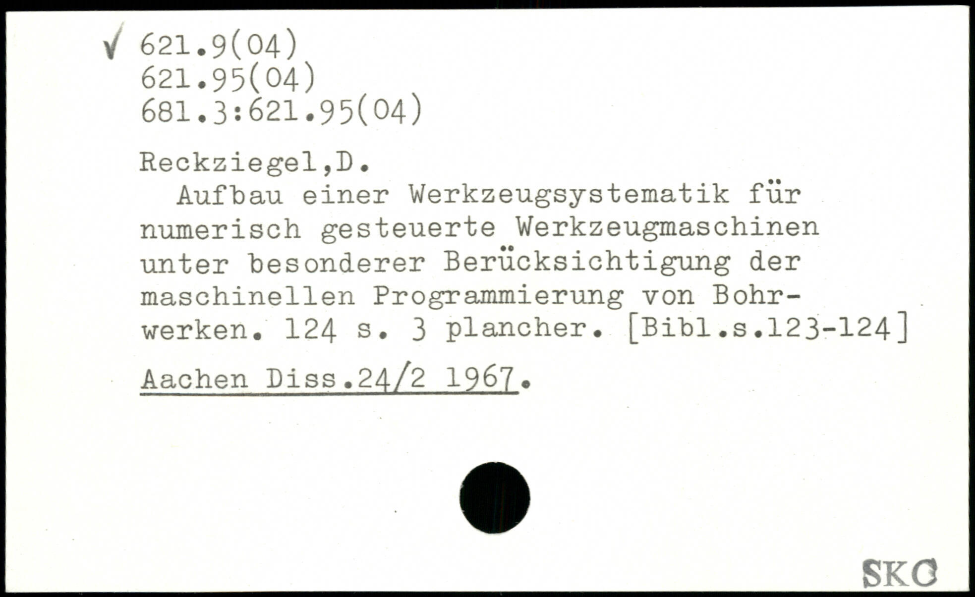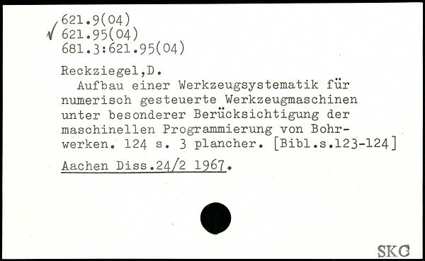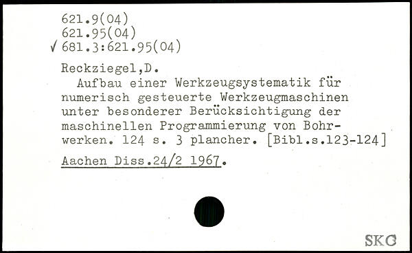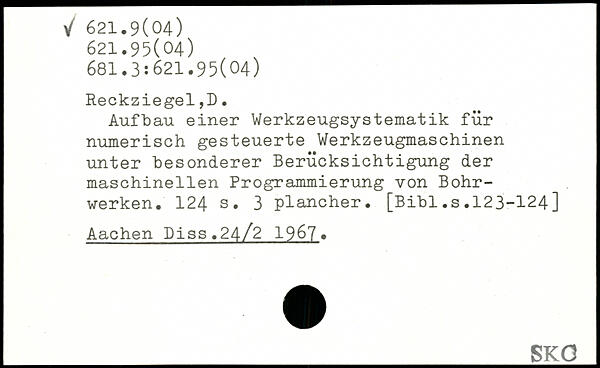 Aufbau einer Werkzeugsystematik für numerisch gesteuerte Werkzeugmaschinen unter “besonderer Berücksichtigung der maschinellen Programmierung von Bohrwerken.