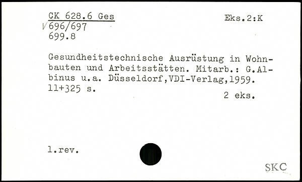 Gesundheitstechnische Ausrüstung in Wohnbauten und Arbeitsstätten. Mitarb.: G.A1-binus u.a.
