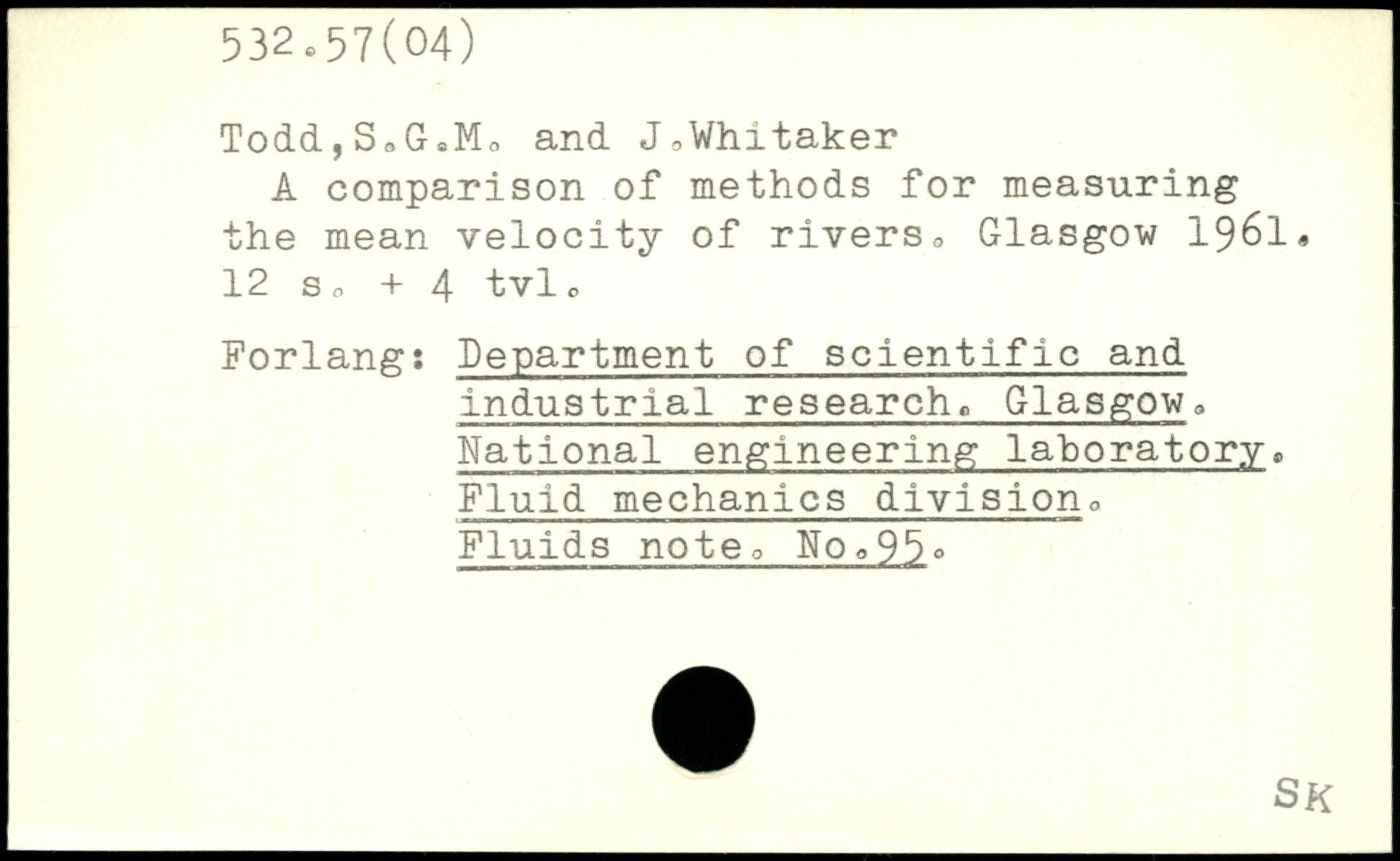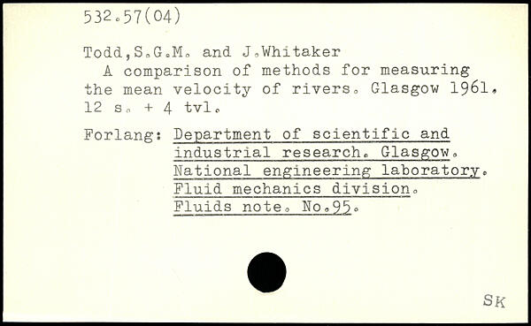 Todd,SoGaMo and J,Whitaker A comparison of methods for measuring the mean velocity of rivers,, Glasgow 1961.