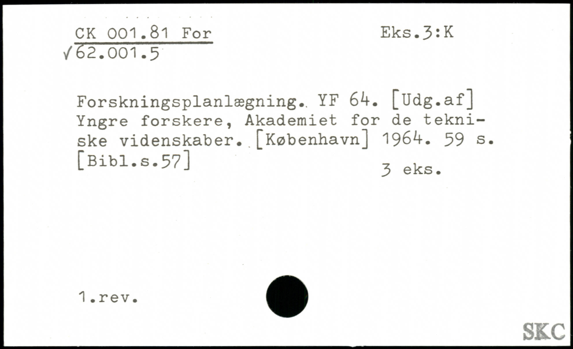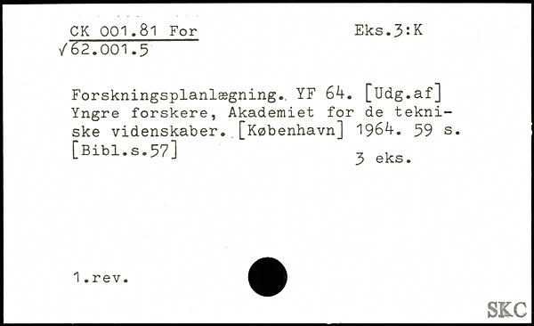 Forskningsplanlægning.. YF 64. [Udg.af] Yngre forskere, Akademiet for de tekniske videnskaber.