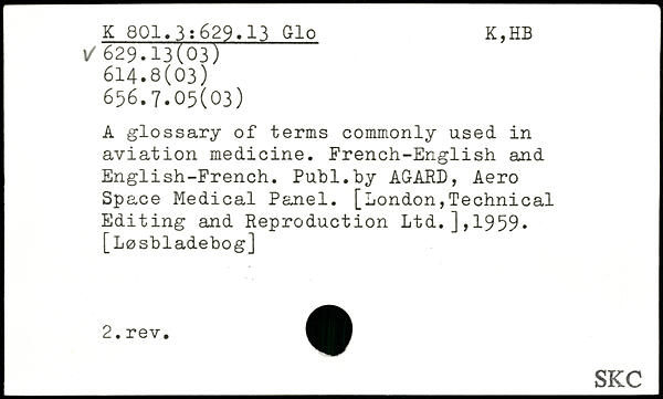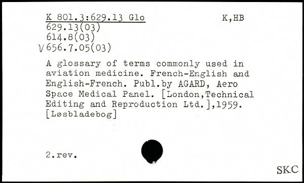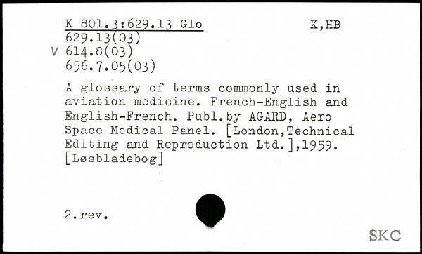 A glossary of terms commonly used in aviation medicine. French-English and English-French. Publ.hy AGARD, Aero Space Medical Panel.
