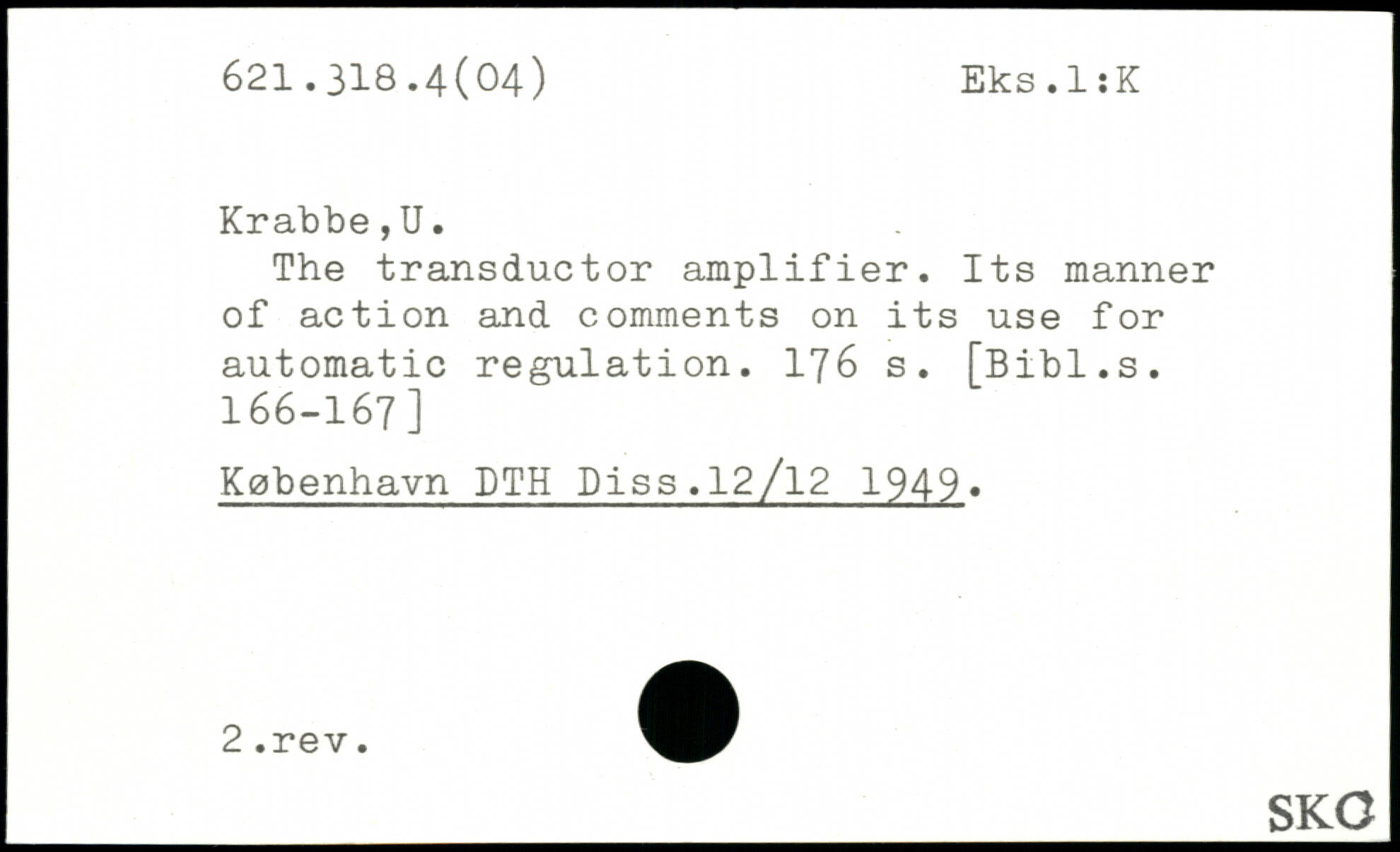 The transductor amplifier. Its manner of action and comments on its use for automatic regulation.
