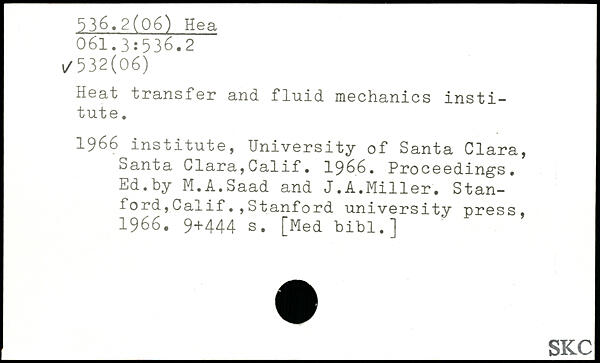 Heat transfer and fluid mechanics institute. 1966 institute, University of Santa Clara, Santa Clara,Calif. 1966. Proceedings. Ed.by M.A.Saad and J.A.Miller. Stanford, Calif ., Stanford university press, 1966
