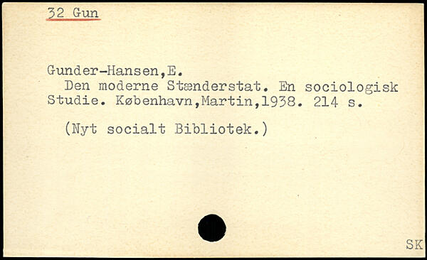 G-under-Hans en, B. Len moderne Stænderstat. En sociologisk Studie.
