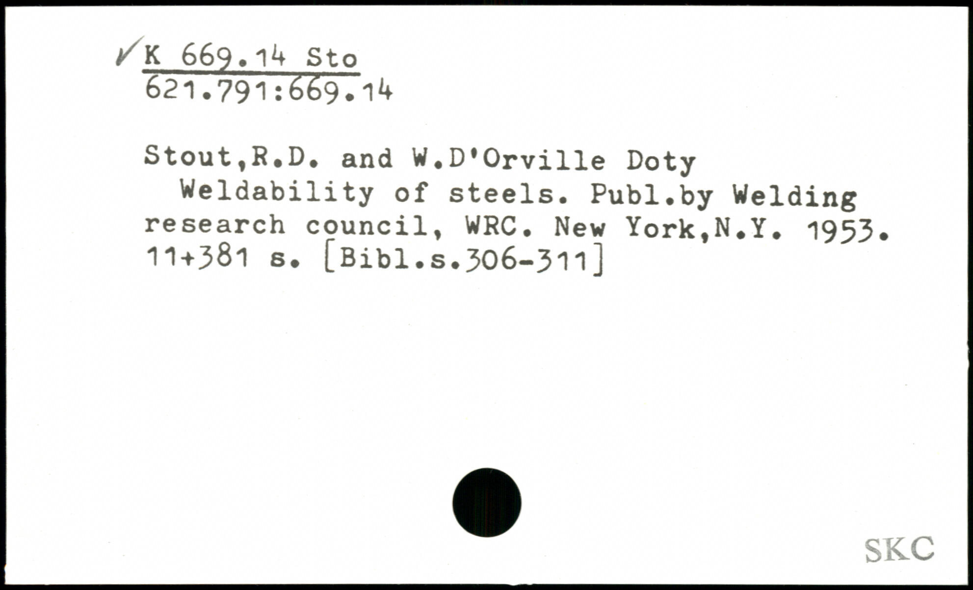 Stout, R. D, and W.D'Orville Doty Weldability of steels.