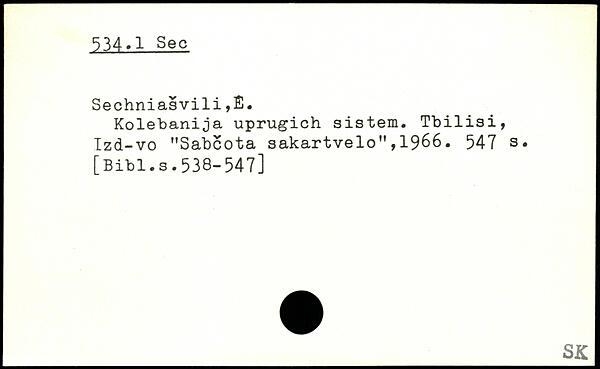 Kolebanij a uprugich sistem. Tbilisi, Izd-vo "Sabcota sakartvelo",1966.