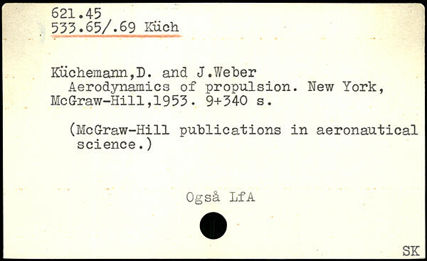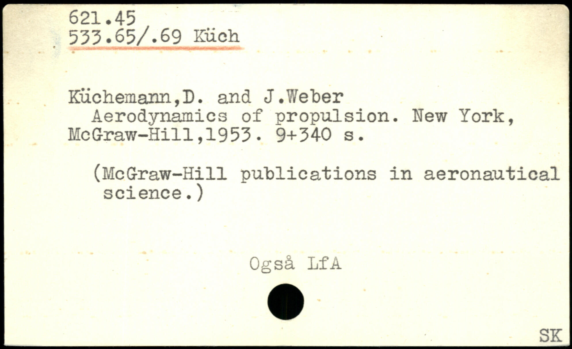 Kiichemarm, D. and J .Weber Aerodynamics of propulsion.