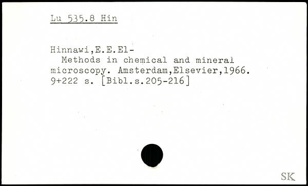 Methods in chemical and minerai microscopy.