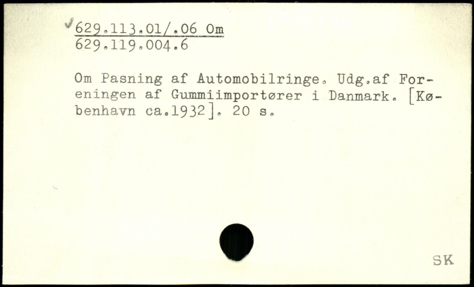 Om Pasning af Automobilringe, Udg,af Foreningen af Gummiimportører i Danmark. [København ca,1932]