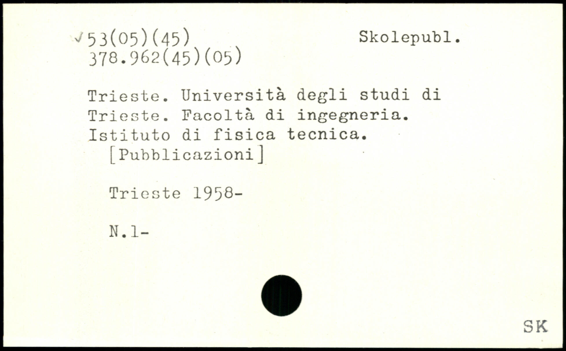 Trieste. Università degli studi di Trieste. Facoltà di ingegneria. Istituto di fisica tecnica. [PubbiicazioniJ Trieste 1958-