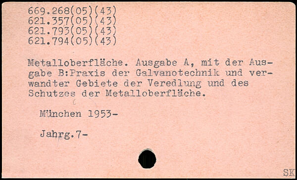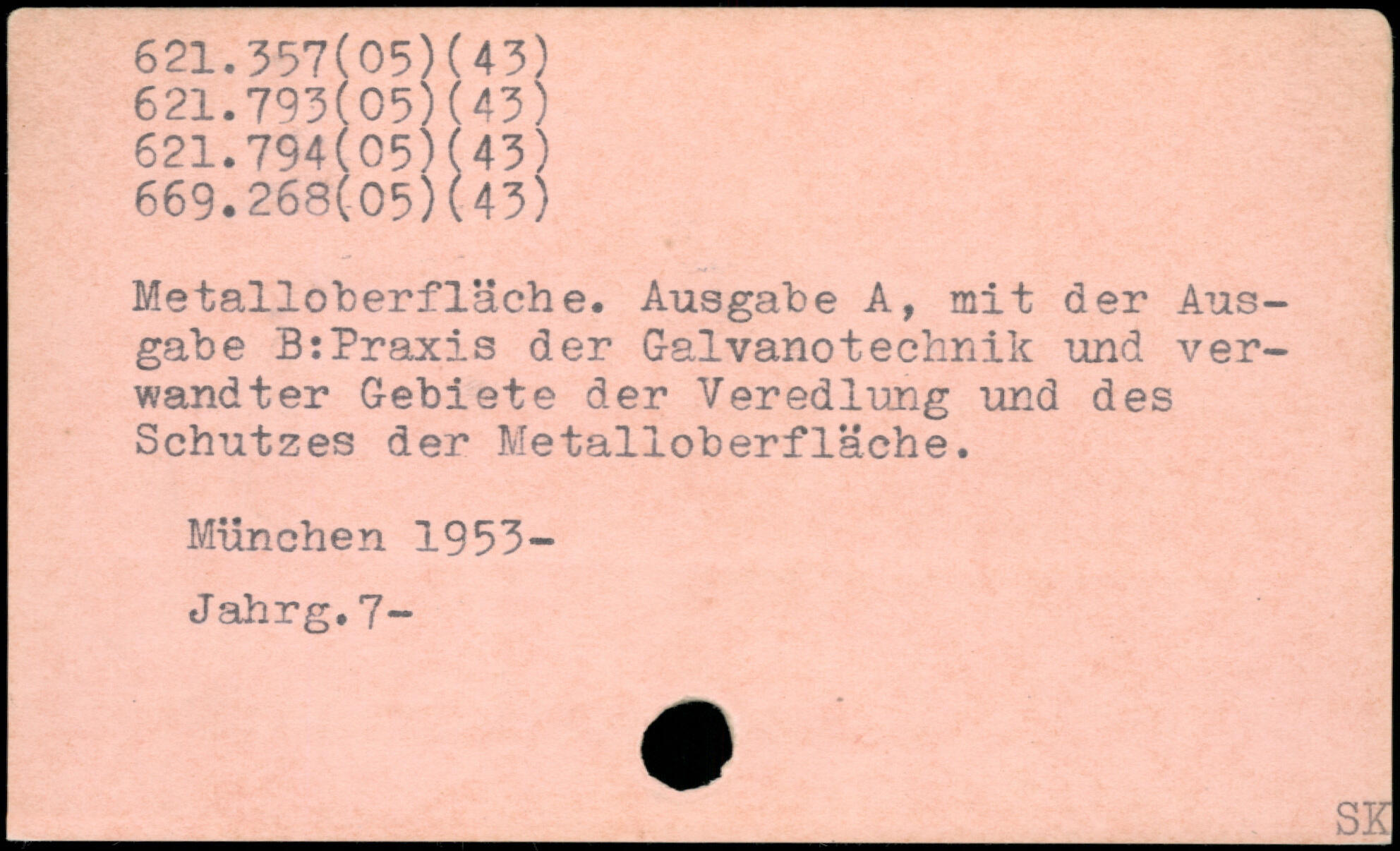 Metalloberfläche. Ausgabe A, mit der Ausgabe B:Praxis der Galvanotechnik und verwandter Gebiete der Veredlung und des Schutzes der Metalloberfläche.
