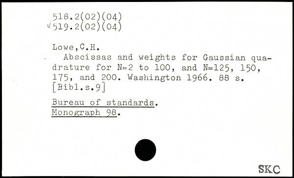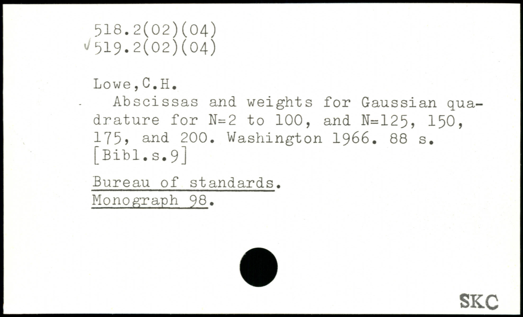 Abscissas and weights for Gaussian quadrature for N=2 to 100, and N=125, 150, 175j and 200.