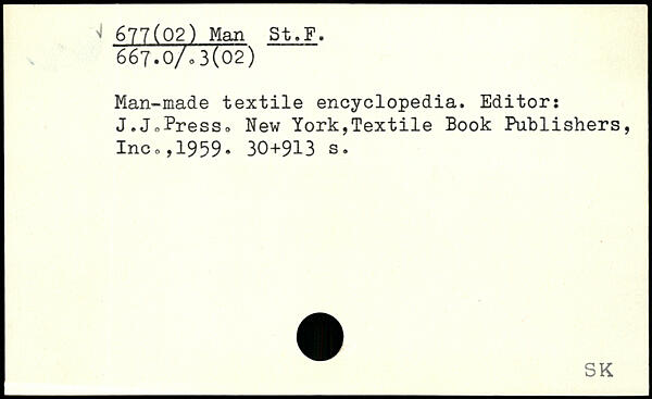 Man-made textile encyclopedia. Editors J.J0Press, New York,Textile Book Publishers, Inc0,1959.