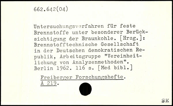 Untersuchungsverfahren für feste Brennstoffe unter besonderer Berücksichtigung der Braunkohle. [Hrsg.]: Brennstoff technische Ge Seilschaft in der Deutschen demokratischen Republik, Arbeitsgruppe ”Vereinheitlichung von Analysenmethoden".