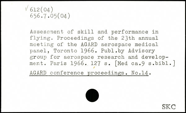 Assessment of skill and performance in flying. Proceedings of the 23th annual meeting of the AGARD aerospace medical panel, Toronto 1966.