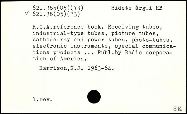 R.C.A.reference book. Receiving tubes, industrial-type tubes, picture tubes, cathode-ray and power tubes, photo-tubes, electronic instruments, special communications products ...