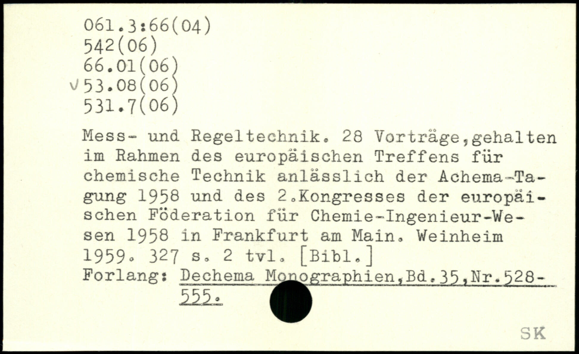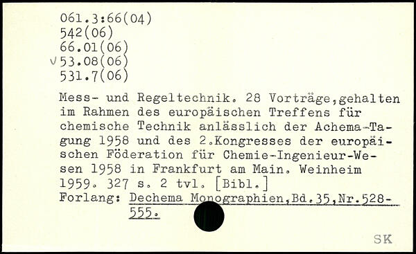 Mess- und Regeltechnik. 28 Vorträge,gehalten im Rahmen des europäischen Treffens für chemische Technik anlässlich der Achema-Ta-gung 1958 und des 2.Kongresses der europäischen Föderation für Chemie-Ingenieur-We-sen 1958 in Frankfurt am Main. Weinheim 1959