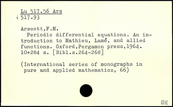 Periodic differential equations. An introduction to Mathieu, Lame, and allied functions.