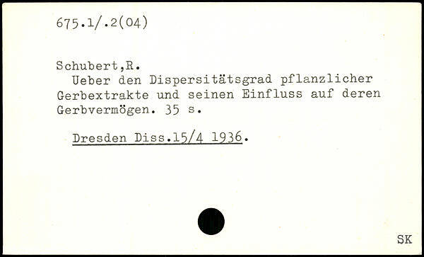 Ueber den Dispersitätsgrad pflanzlicher Gerbextrakte und seinen Einfluss auf deren Gerbvermögen.