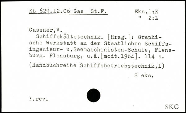 Schiffskältetechnik. [Hrsg.]: Graphische Werkstatt an der Staatlichen Schiffsingenieur- u.Seemaschinisten-Schule, Flensburg. Flensburg, u.ä.[modt.1964].