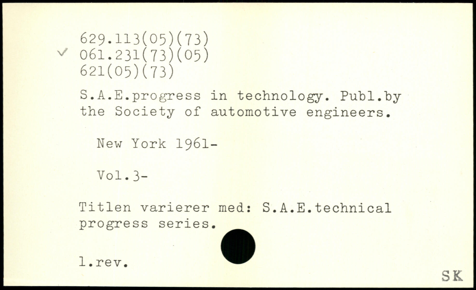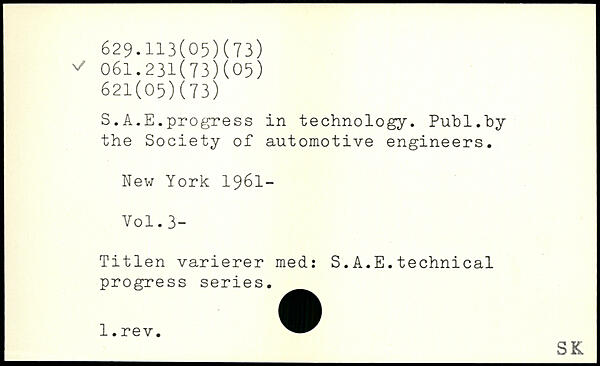 S.A.E.progress in technology. Puhl.hy the Society of automotive engineers.