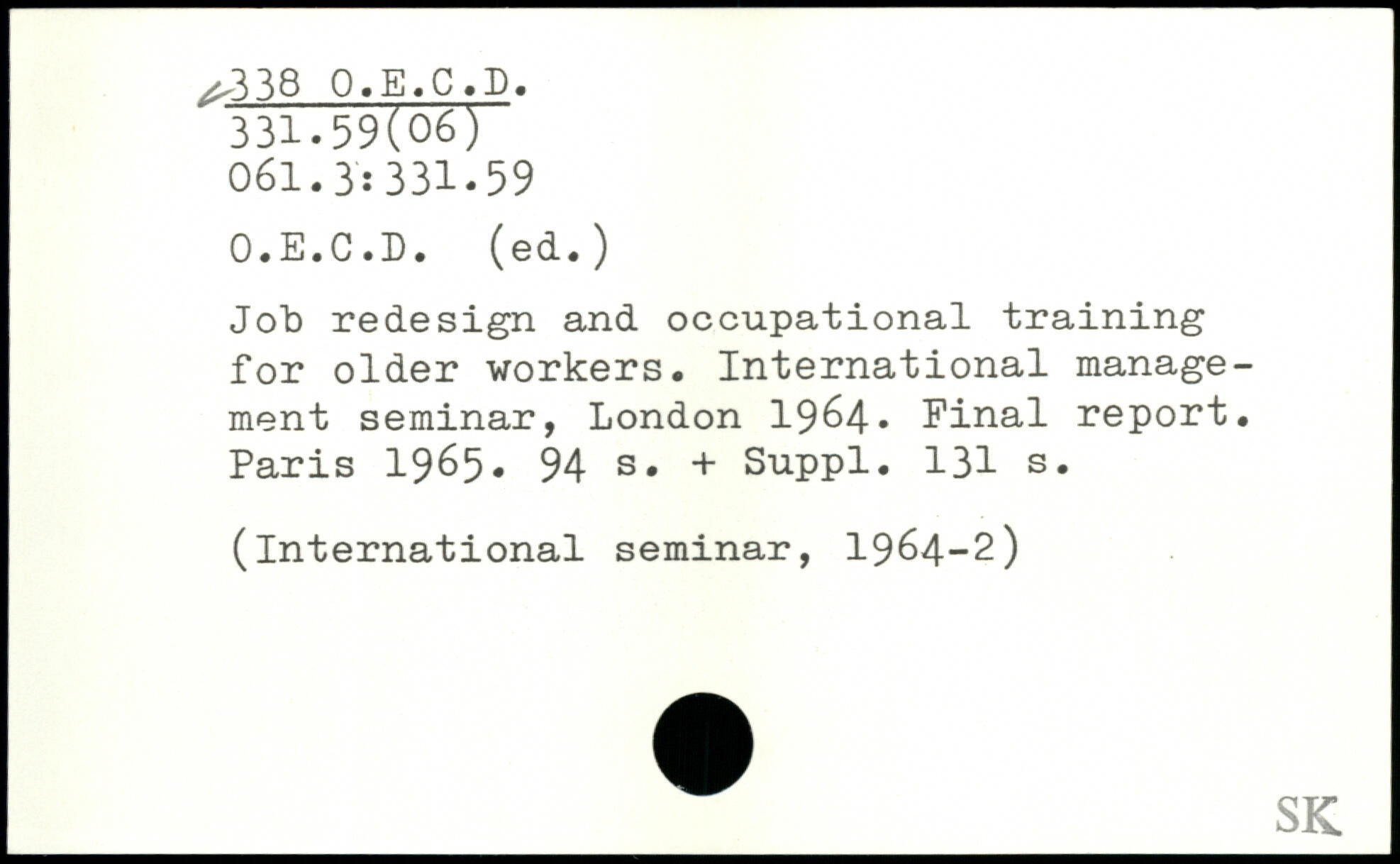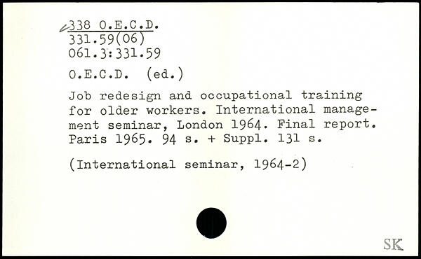 Job redesign and occupational training for older workers. International management seminar, London 19^4, Final report.