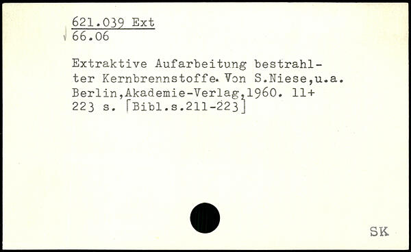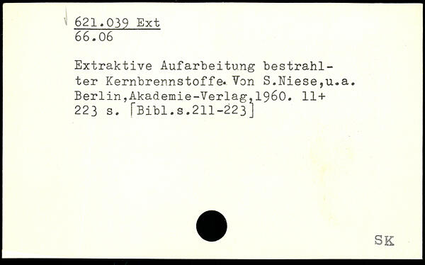 Extraktive Aufarbeitung bestrahlter Kernbrennstoffe. Von S.Niese,u.a.