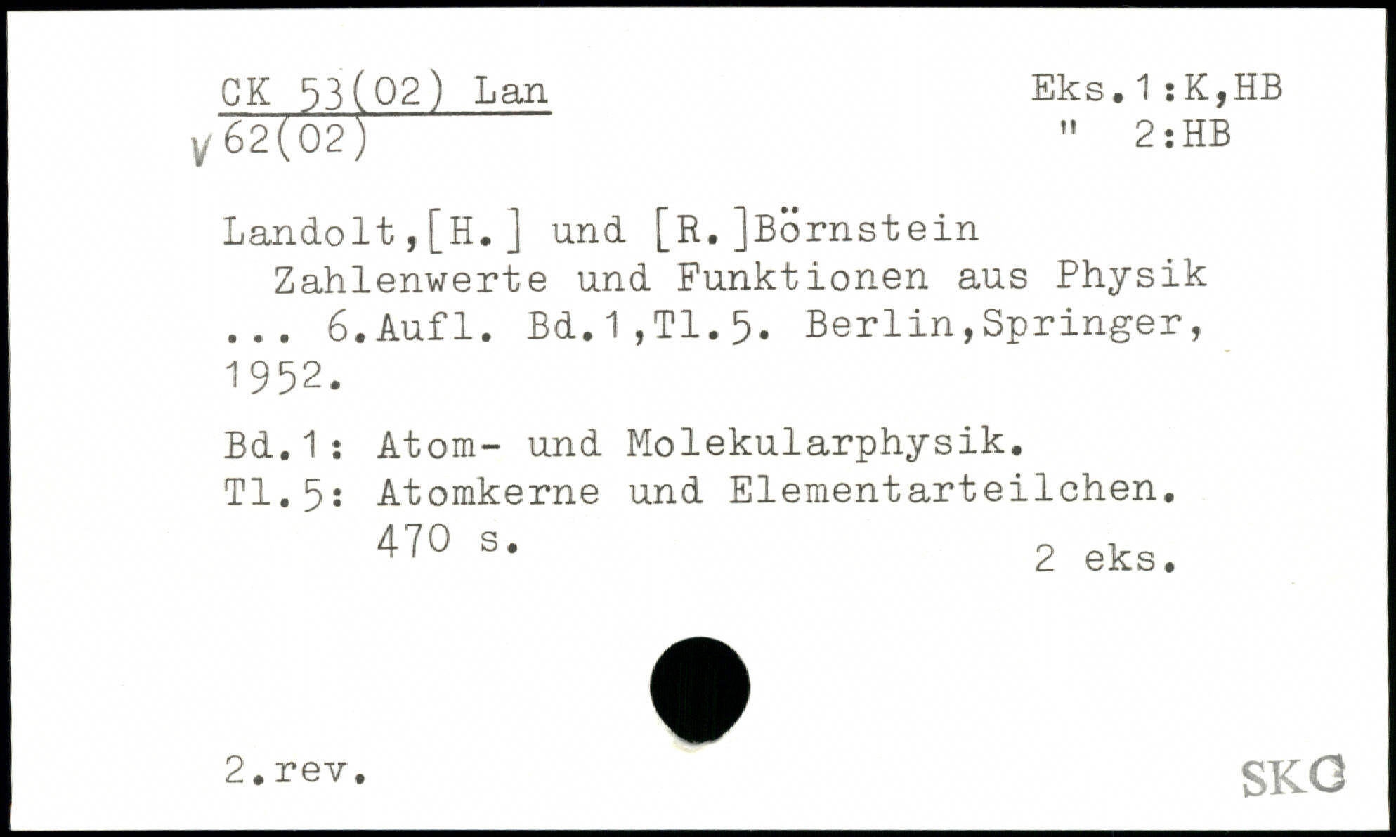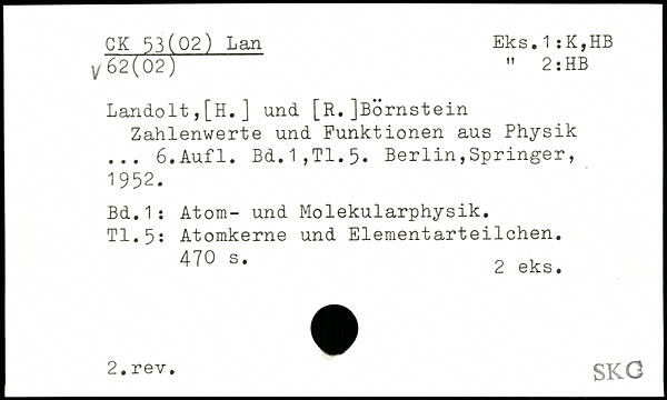 Landolt,[H.] und [R.Jßörnstein Zahlenwerte und Funktionen aus Physik ...