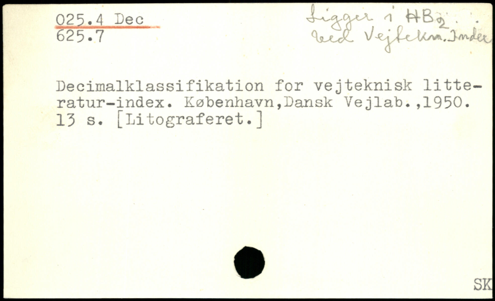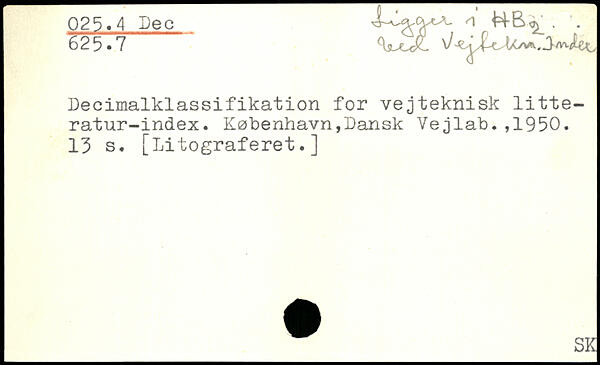 Decimalklassifikation for vejteknisk litte-ratur-index.