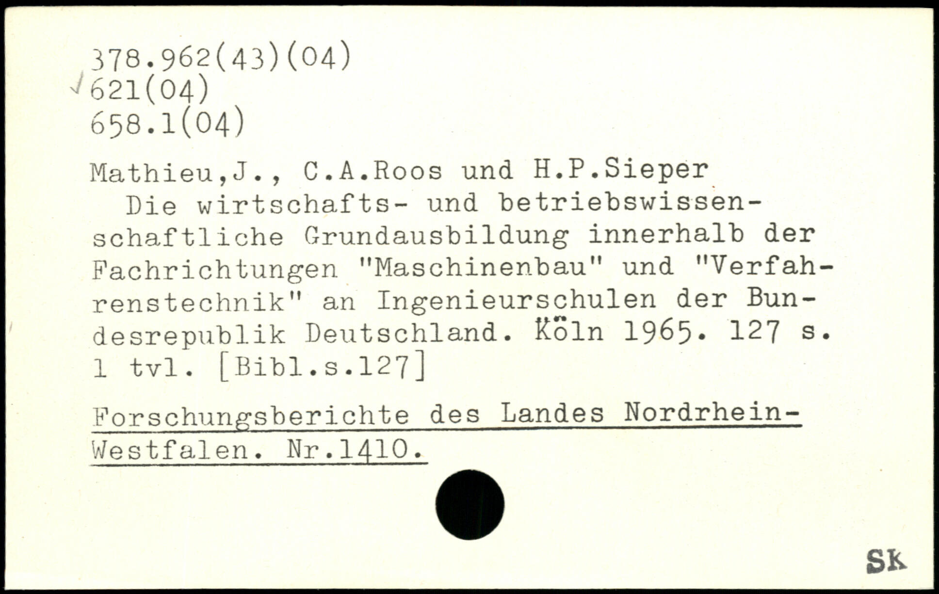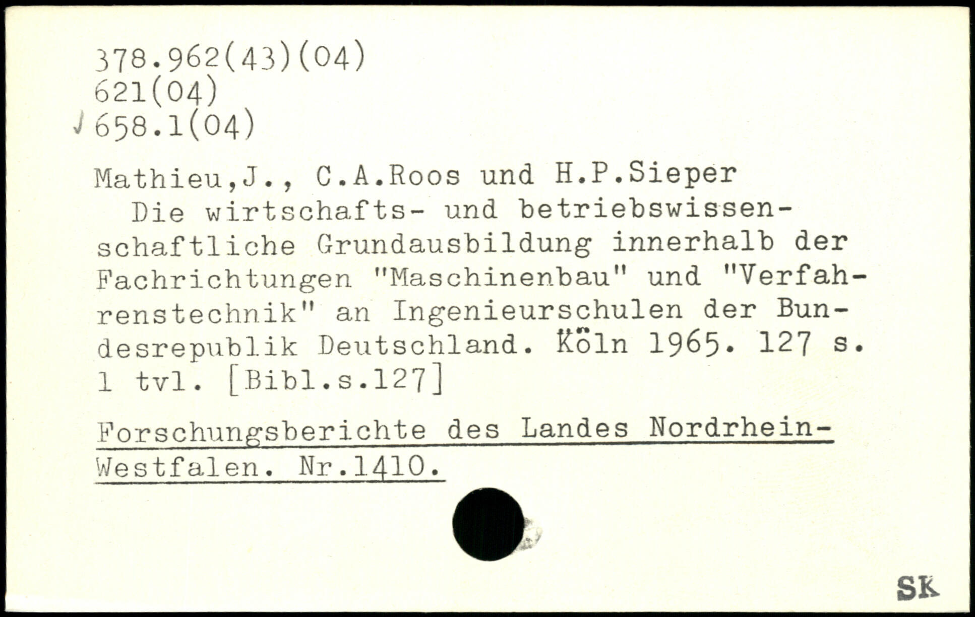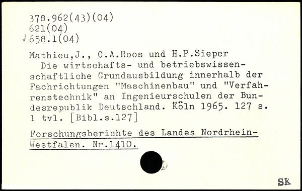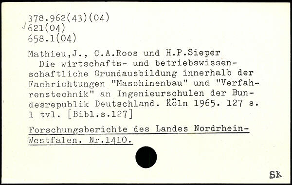 Mathieu,J., C.A.Roos und H.P.Sieper Die wirtschafts- und betriebswissenschaftliche Grundausbildung innerhalb der Fachrichtungen "Maschinenbau" und "Verfahrenstechnik” an Ingenieurschulen der Bundesrepublik Deutschland.