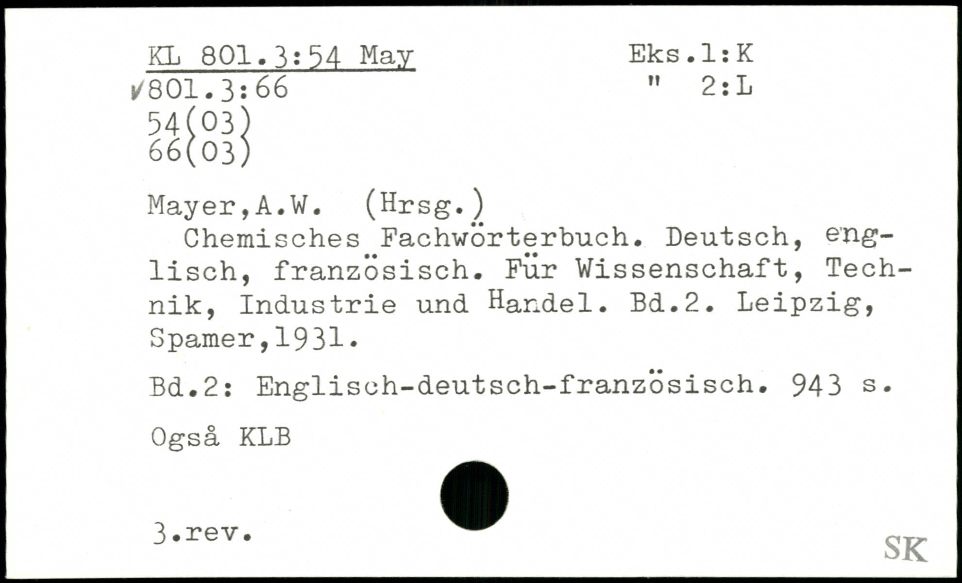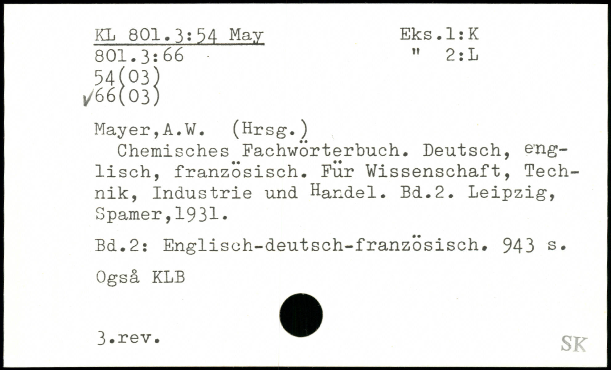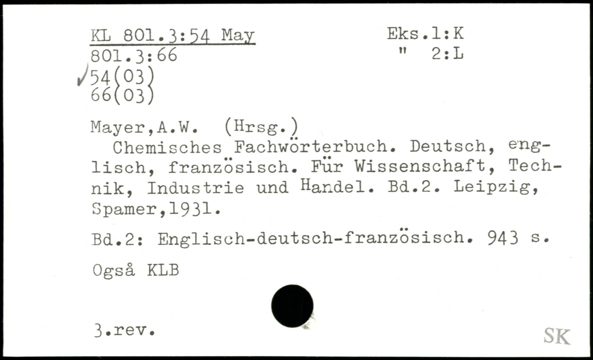 Chemisches Fachwörterbuch. Deutsch, englisch, französisch. Für Wissenschaft, Technik, Industrie und Handel.