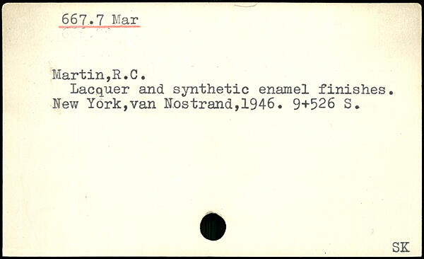 Lacquer and synthetic enamel finishes. New York,van Nostrand,1946