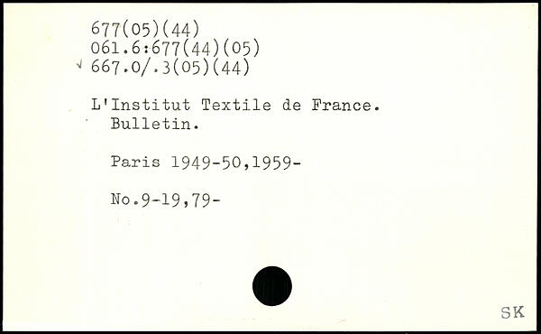 L’Institut Textile de France. Bulletin.