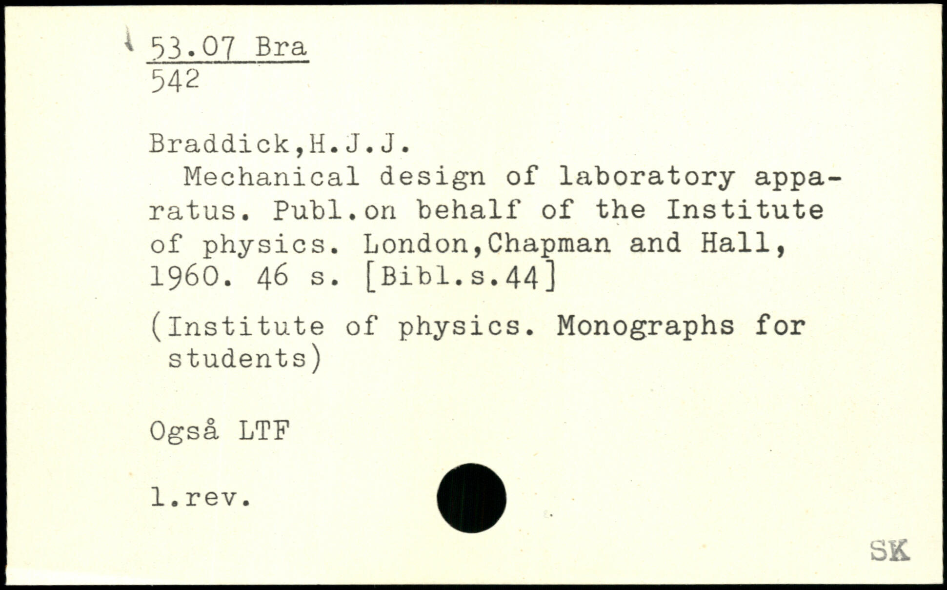 Mechanical design of laboratory apparatus. Publ.on behalf of the Institute of physics.