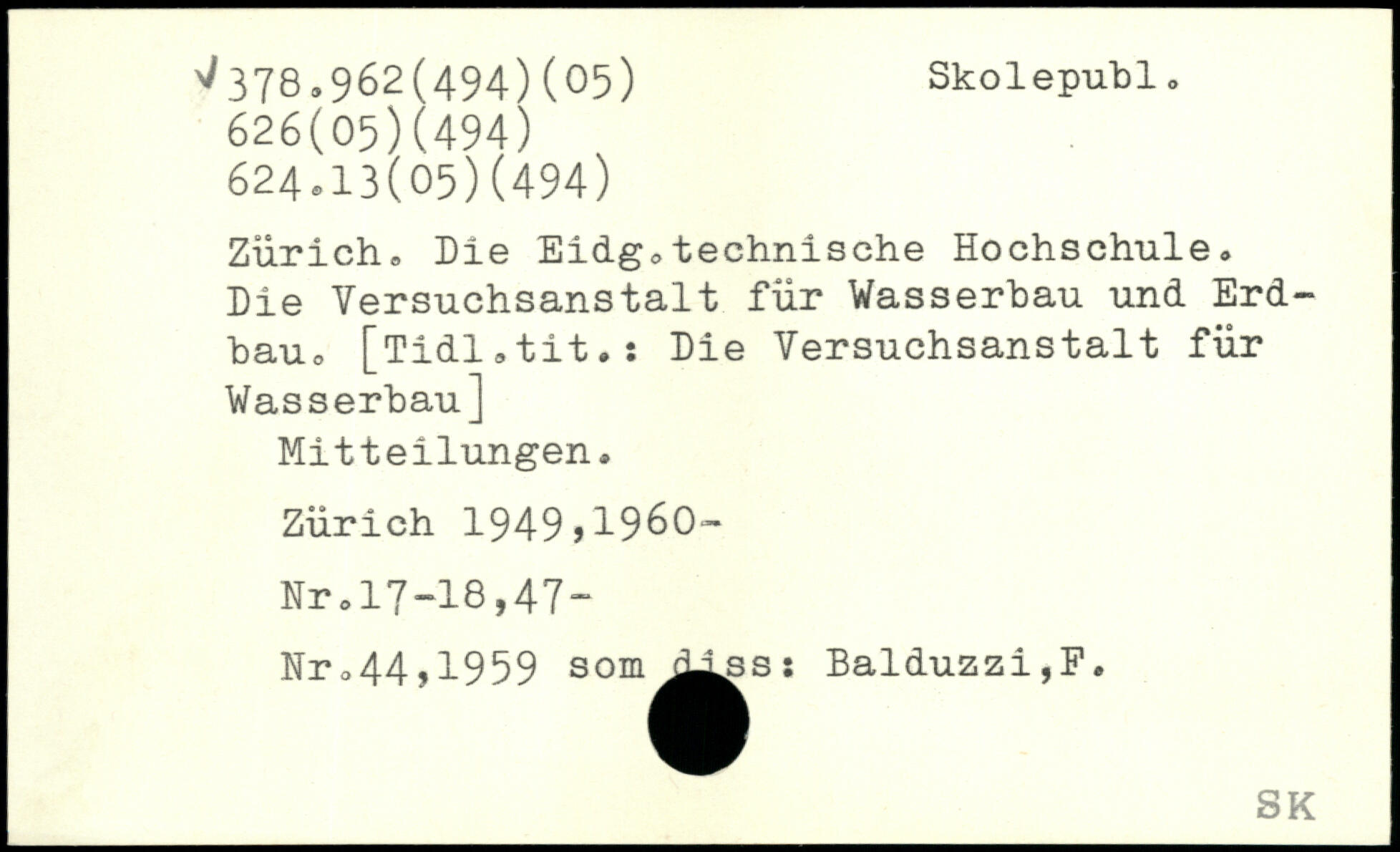 Zürich, Die Eidg,technische Hochschule, Die Versuchsanstalt für Wasserbau und Erd-bau, [Tidl,tit.: Die Versuchsanstalt für Wasserbau] Mitteilungen, Zürich 1949>1960- NrolT-18,47- Nr,44